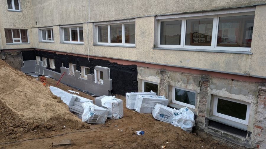 W ramach zadania, którym jest termomodernizacja obiektu, wykonywana jest m.in. izolacja pionowa fundamentów oraz ocieplenie ścian, wymiana instalacji grzewczej w budynku, a także wymiana stolarki okiennej i drzwiowej. Przez to obecnie teren szkoły przypomina bardziej plac budowy, jednak prace postępują cały czas do przodu. Koszt prac wynosi po przetargu 14 mln 37 tys. złotych.