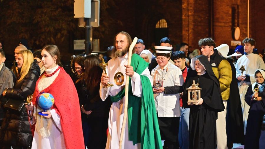 Uroczystość rozpoczęła się o godzinie 20 tradycyjnym wniesieniem relikwii świętych i błogosławionych z różnych parafii z Gniezna i okolic, połączonym z modlitwą. Większość z nich była ucharakteryzowana na postacie, które patronują ich wspólnocie.