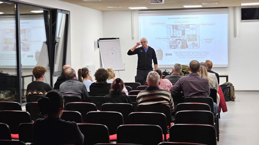 Zebranych powitał prezydent Michał Powałowski, podkreślając wagę budowania świadomości społecznej w zakresie reagowania kryzysowego. Samo spotkanie poprowadził natomiast Jarosław Beim – były żołnierz sił specjalnych z 25-letnim doświadczeniem w strukturach Ministerstwa Obrony Narodowej. Prelegent, mający za sobą praktykę bojową i szkoleniową, a także pracę w zakresie bezpieczeństwa publicznego, w bardzo przystępny sposób opowiadał o założeniach tego, co przez ostatnie 30 lat było w zasadzie zarzucone – obronie cywilnej oraz bezpieczeństwie własnym obywateli.