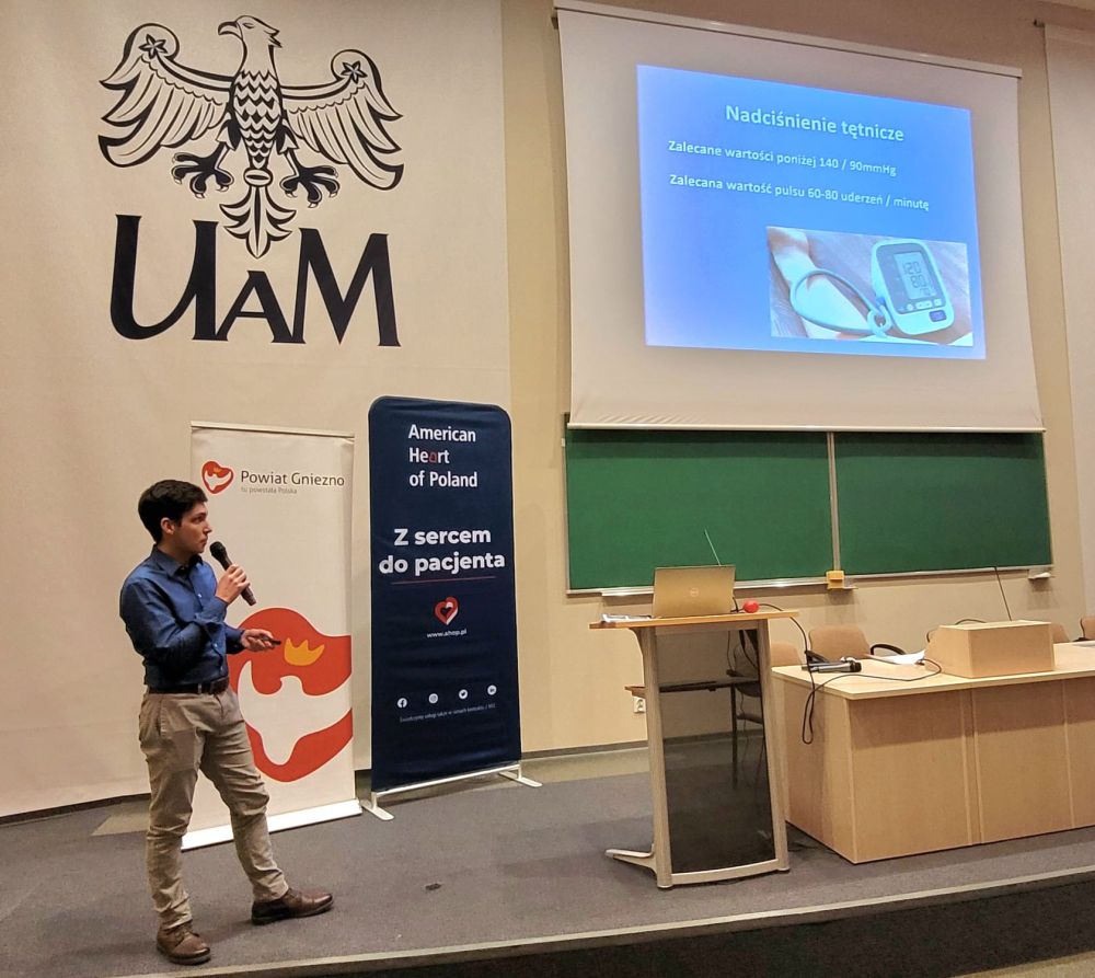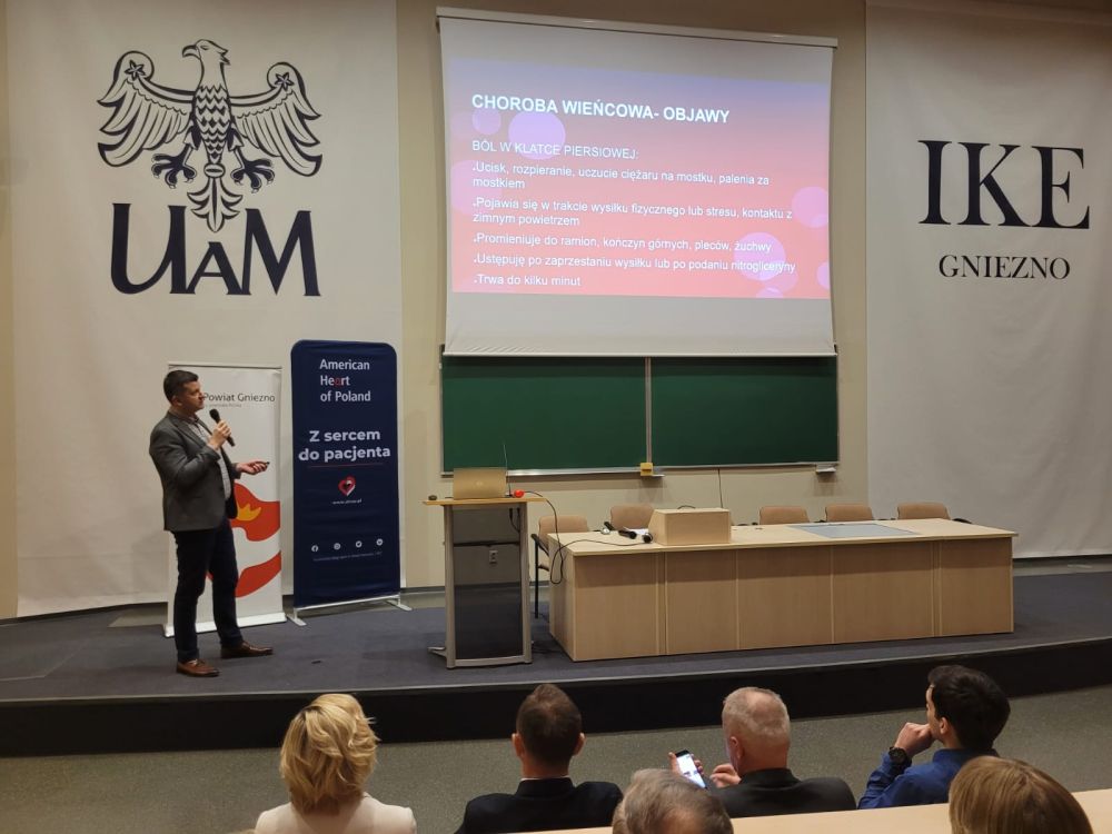 Podczas Klubu Pacjenta prelekcję prowadził doktor Witold Gwizdała, kardiolog, Grupa American Heart of Poland, który na co dzień dba o ludzkie serca w Szpitalu Pomnik Chrztu Polski w Gnieźnie. Wyjaśnił czym jest martwica serca oraz zwrócił szczególną uwagę na objawy zawału serca.