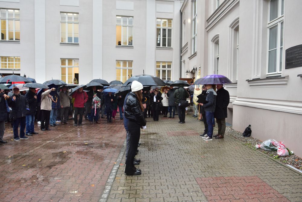 W piątkowe popołudnie, w strugach padającego deszczu, na dziedzińcu dawnego liceum zebrała się grupa absolwentów raz z obecnymi uczniami I LO. Stąd, po powitaniu zgromadzonych i złożeniu kwiatów pod tablicą upamiętniającą uczniów i wychowawców poległych w obronie ojczyzny, wszyscy wyruszyli w pochodzie do katedry na Mszę świętą. Po wieczornym nabożeństwie uroczystość, z uwagi na pogodę, kontynuowana była w holu placówki przy ul. Kostrzewskiego.