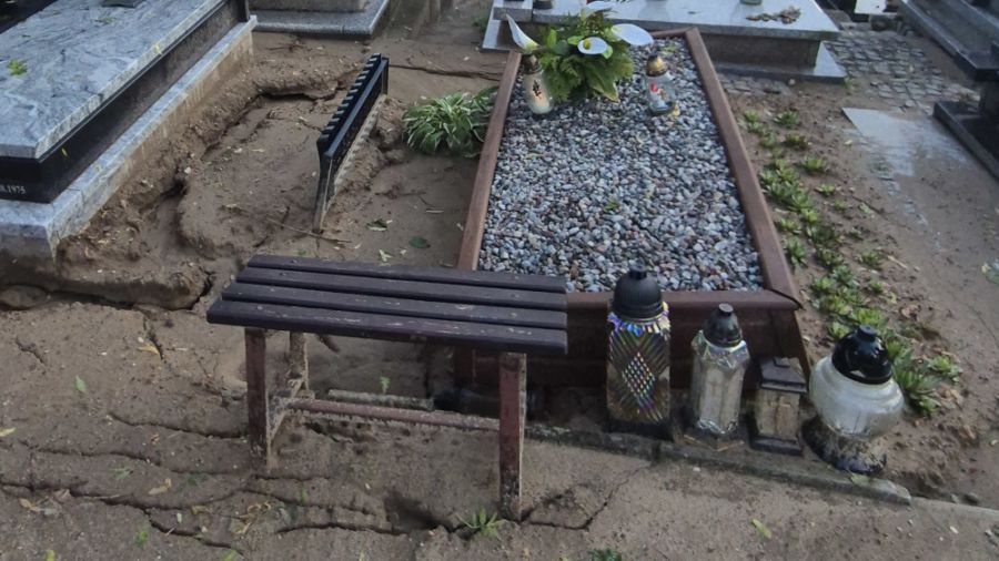 Zarządca cmentarzy przekazał nam, że w niektórych częściach sytuacja była trudna, bowiem woda zalała fragmenty sektorów i bardzo wolno wchłaniała w grunt, przez co niektóre nagrobki pozapadały się lub mogą być niestabilne. Dlatego w związku z tym najlepiej ograniczyć swoje wizyty do minimum przez najbliższe dwa dni, do momentu wyschnięcia gruntu. O to samo apelowano po wczorajszym posiedzeniu sztabu kryzysowego.