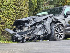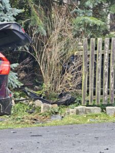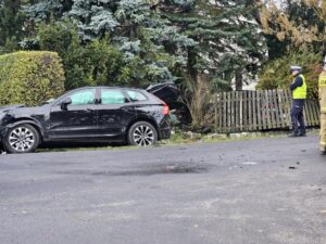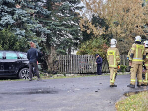 W poniedziałkowe południe na skrzyżowaniu dwóch lokalnych dróg w Dębnicy w gminie Kłecko doszło do zderzenia dwóch samochodów osobowych. Siła uderzenia była na tyle duża, że jedno z nich wpadło na posesję.