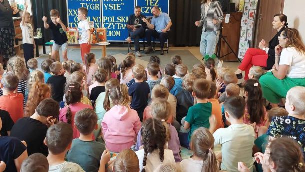 Biblioteczna lokomotywa z wagonami pełnymi książek, przez cały XXIII Ogólnopolski Tydzień Czytania Dzieciom, jeździła od przedszkola do przedszkola, od szkoły do szkoły, kilka razy zatrzymała się w Domu Sąsiedzkim pod Sówką.