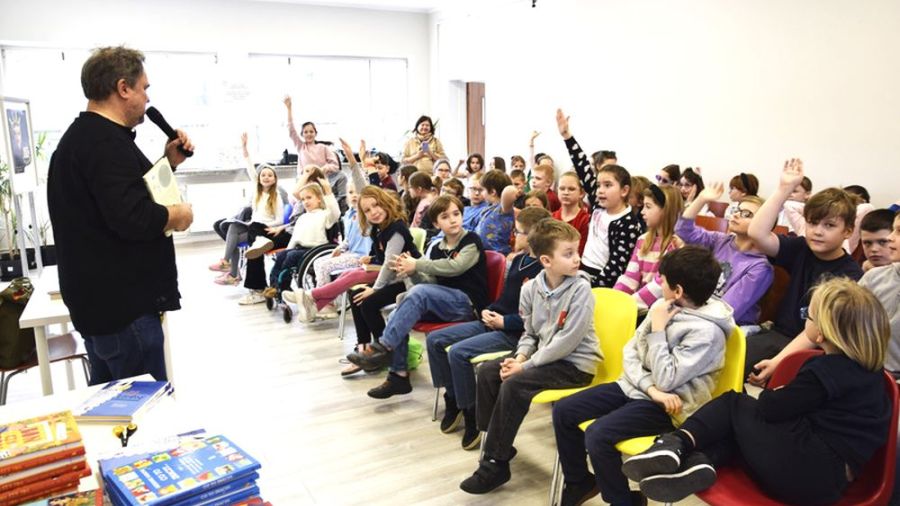 Grzegorz Kasdepke jest nie tylko królem literatury, ale i mistrzem rozmowy z dziećmi. Co chwilę w bibliotecznej Sówce wybuchały salwy śmiechu. Mali czytelnicy okazali się też bardzo ciekawscy, chcieli wiedzieć, ile autor Kuby i Buby ma lat oraz ile zarabia?
