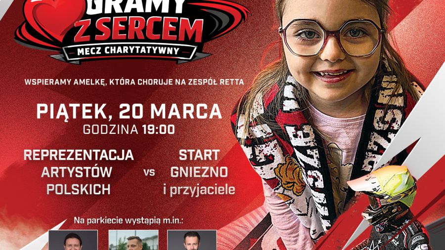 Mecz charytatywny „Gramy z sercem” oraz prezentacja drużyny Ultrapur Start Gniezno odbędą się 20 marca o godz. 19:00 w hali sportowej Szkoły Podstawowej nr 3 przy ul. Czarneckiego 7 w Gnieźnie. Wstęp – cegiełka na rzecz Amelki.