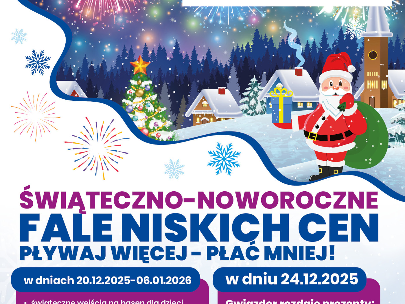 Zanurz się w magiczny klimat świąt i rozpocznij Nowy Rok pełen energii! Gnieźnieński Ośrodek Sportu i Rekreacji zaprasza do skorzystania z wyjątkowych rabatów, które sprawią, że każda wizyta na basenie będzie jeszcze przyjemniejsza.
