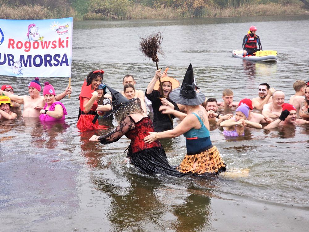 Padający deszcz nie odstraszył wielu miłośników zimnych kąpieli – w niedzielne południe na plaży Jeziora Winiary odbyła się inauguracja sezonu z Królewskimi Morsami Gniezno. Motywem były przebrania halloweenowe, a najlepiej przebranych nagrodzono… tranem – na zdrowie.