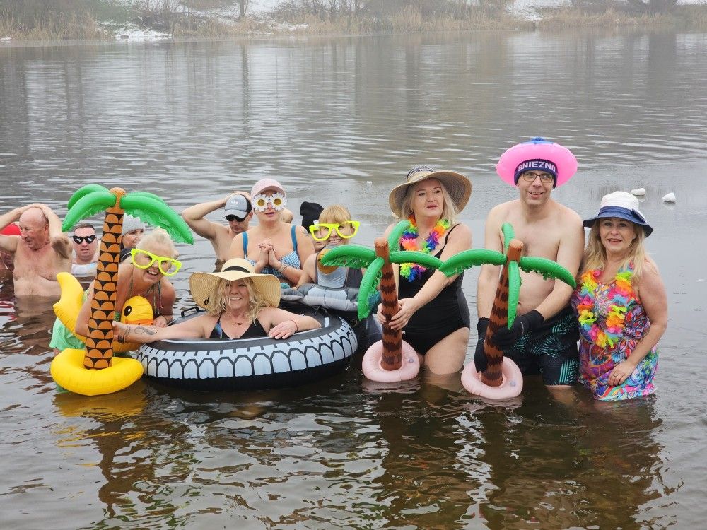 Gnieźnieńscy miłośnicy mroźnych kąpieli w niedzielne południe wypoczywali pod palmami – wszystko w ramach cotygodniowego morsowania, które tym razem przybrało atmosferę letniej, plażowej imprezy. W końcu temperatura wody, wynosząca około 2,3 stopnia, to już dla nich idealny klimat.