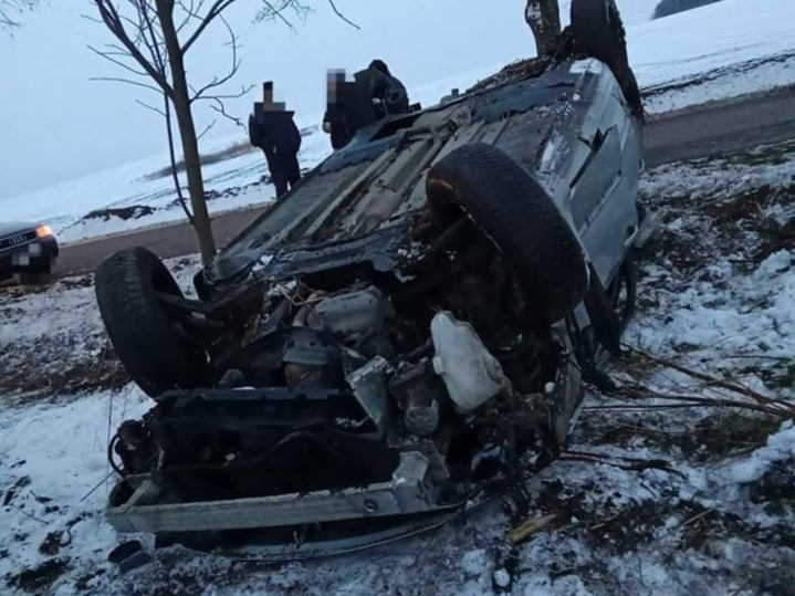 Wypadła autem z jezdni, uderzyła w drzewo i dachowała. Była pijana