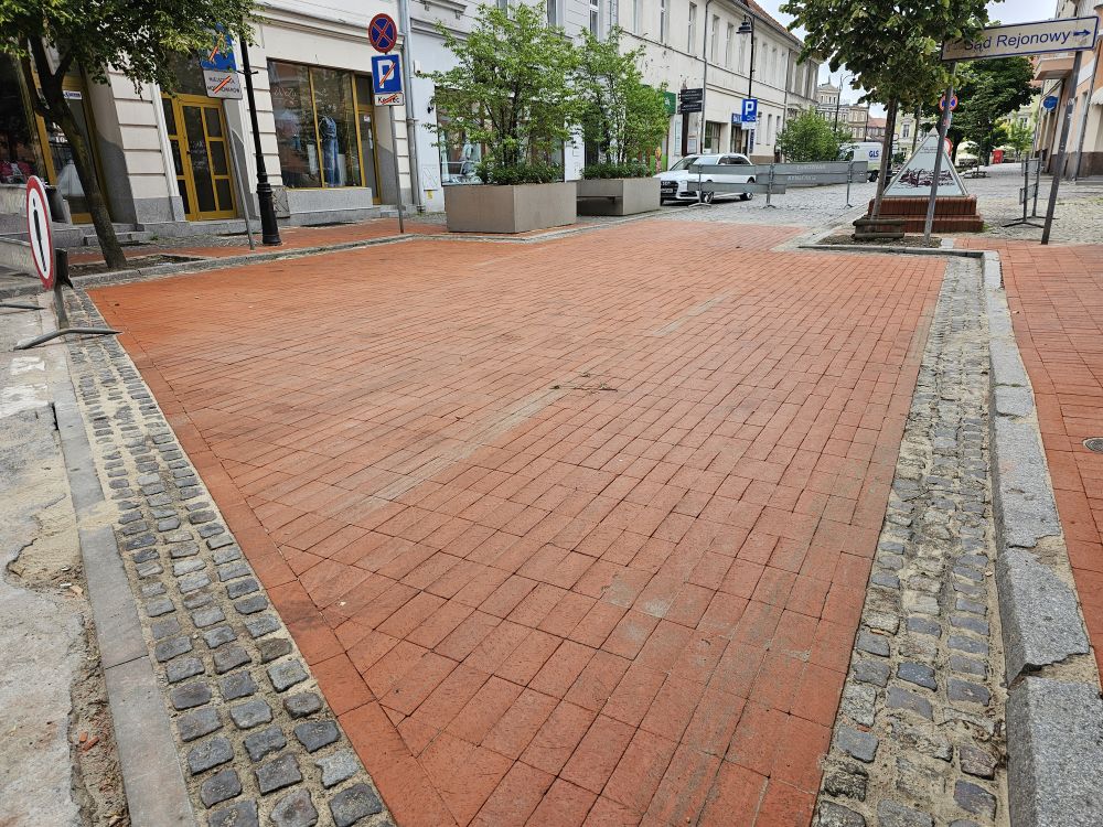 Symboliczne oznaczenie lokalizacji jednej z bram wjazdowych do miasta, ułożone z klinkierowych cegieł, zostało wykonane na ul. Dąbrówki w ramach trwającego remontu. Przed wykonawcą ostatni etap, jakim jest sama nawierzchnia asfaltowej jezdni.