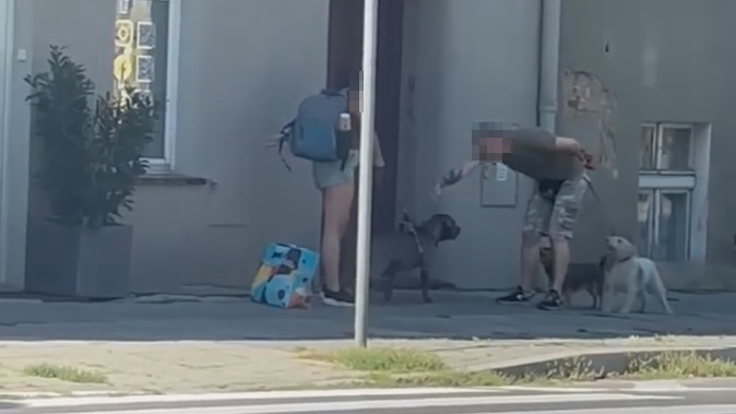 Do sieci trafił film nagrany w centrum Gniezna, na którym mężczyzna uderza psy, aż w końcu jeden z nich wyrywa się na długiej smyczy i rzuca na pozostałe.